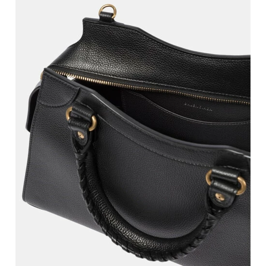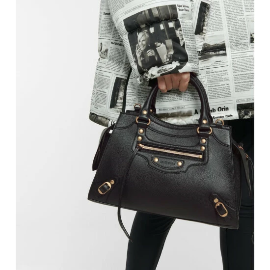 Any storied Balenciaga fan will delight in the black Neo Classic Small tote, which was designed to celebrate the 20th anniversary of an accessory icon. It’s made from grained calf leather and features iconic details: hand-braided top handles, a half-moon yoke and flat rivet hardware. The shape, however, is more sharply structured than the Noughties design, bringing the spirit of this It-bag firmly into the present.