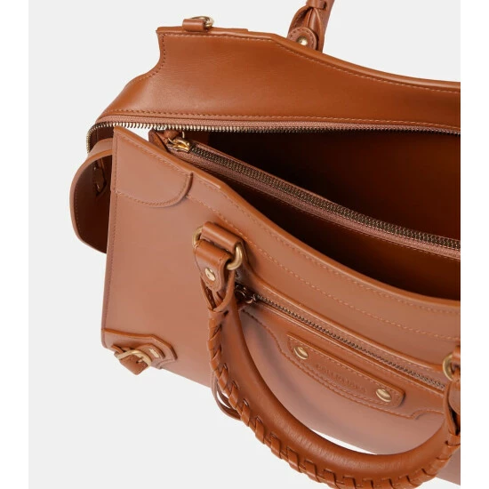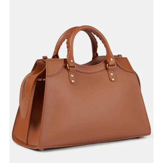 The brown Neo Classic tote is a modern interpretation of Balenciaga’s original It-bag. This Small calfskin design has a newly structured silhouette with a smooth finish. Devotees to the original will appreciate the classic details retained by Demna Gvasalia, from the hand-braided top handles to the stud hardware.