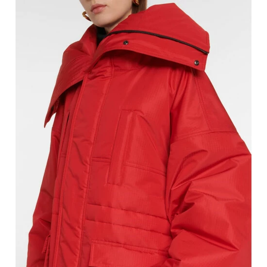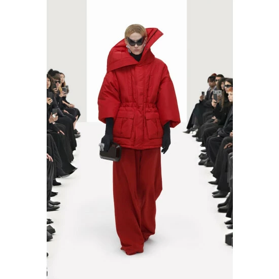 A favorite from Balenciaga’s Resort ’22 runway, this jacket has an oversized standup collar that sweeps up to a point. It’s made from bright red technical fabric and is sure to draw attention from the streetstyle crowd.