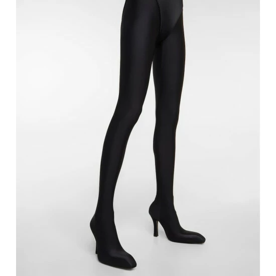 Made to fit from waist to toe, Balenciaga’s Pantaleggings combine the best of leggings and boots. They feature attached heels with leather soles and square toes that will add drama and height.