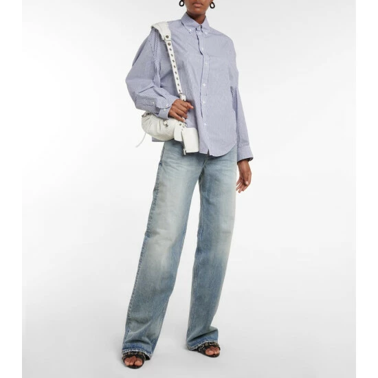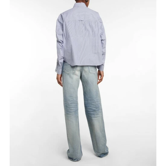 Made from a pinstriped blend of cotton and silk, this shirt from Balenciaga is a boxy design with a buttoned front and a curved hem.
