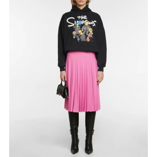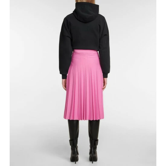 Refresh your wardrobe with a pop of pink with this midi skirt from Balenciaga. It’s made from a finely knit fabric and it has a form-fitting silhouette that flares out into pleats below the hips.