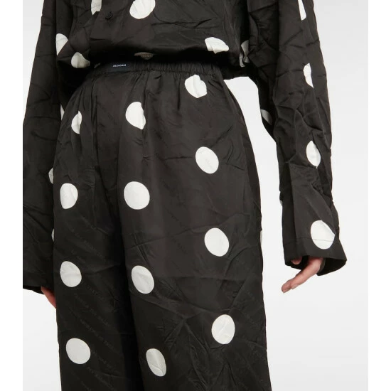 These Balenciaga pants come in the label’s signature oversized silhouette, but it’s the polka-dot print that gives them a sophisticated edge. The high-rise design has an elasticated waistband and full, wide legs.