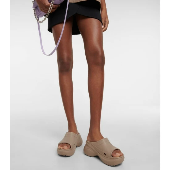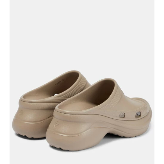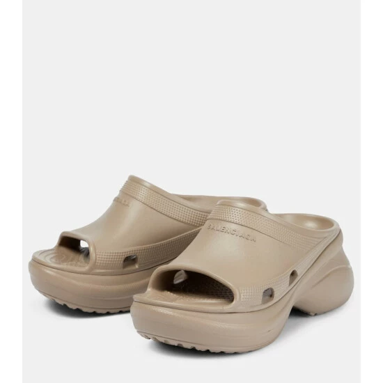 Embrace trending footwear with the Pool Crocs™ mules from Balenciaga. Made from beige rubber, they’re set on thick soles am feature embossed branding across the wide toe straps.
