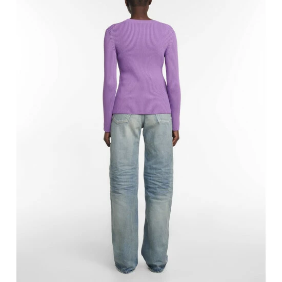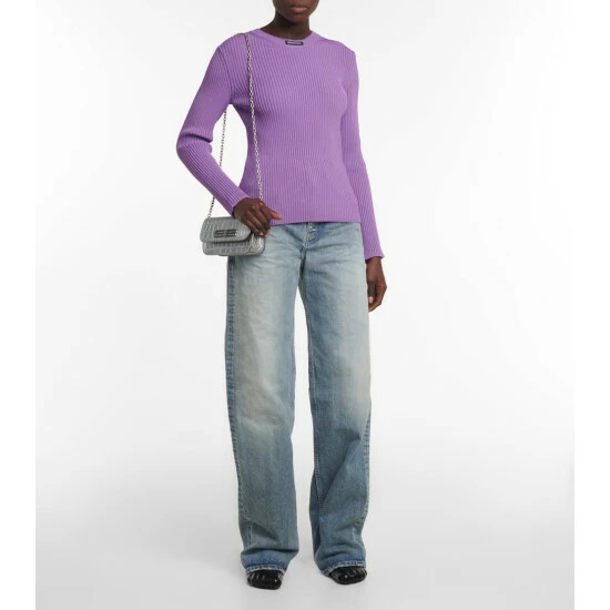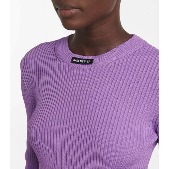 Balenciaga proves that simple details matter, as is the case with this sweater that has the brand label placed on the exterior part of the collar. It’s knitted to a finely ribbed, fitted design.