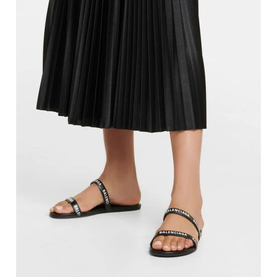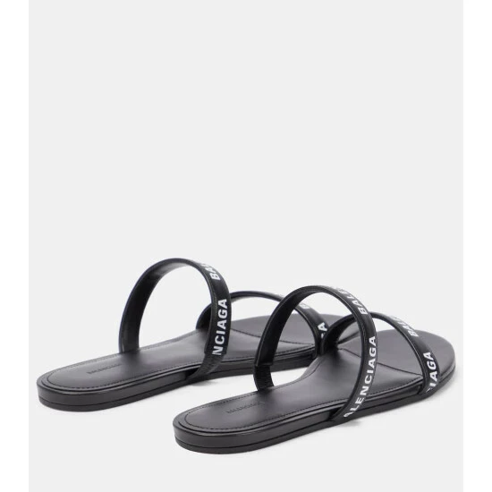 The Round sandals from Balenciaga are named after their curved footbeds. They’re made from smooth calfskin leather with logo-printed straps and embossed soles.