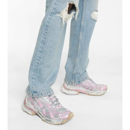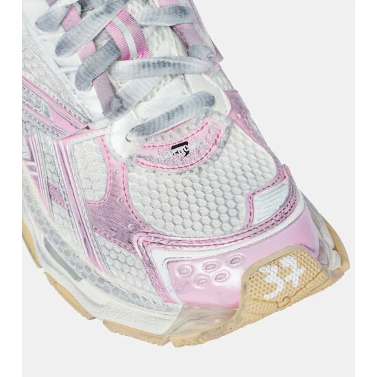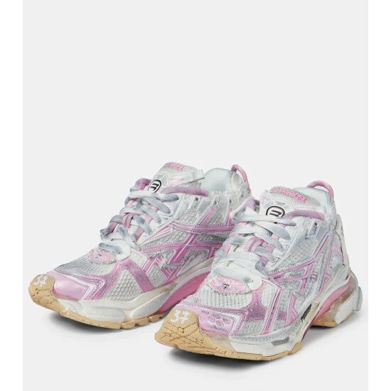These pastel pink and white Runner sneakers from Balenciaga are a performance-ready pair. They’re made from ventilating mesh-paneled nylon with deliberately scuffed soles. Embroidered and rubberized logo detailing provide instant recognition.