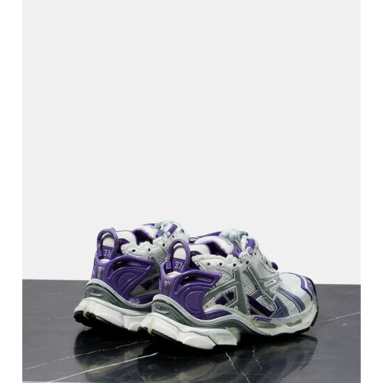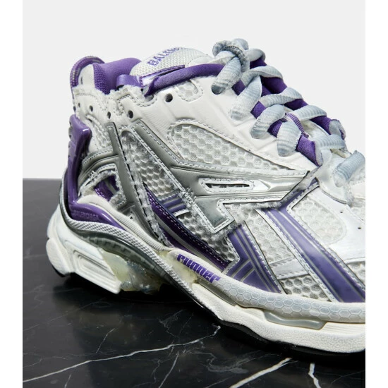 These purple and white Runner sneakers from Balenciaga are a performance-ready pair. They’re made from ventilating mesh-paneled nylon with deliberately scuffed soles. Embroidered and rubberized logo detailing provide instant recognition.