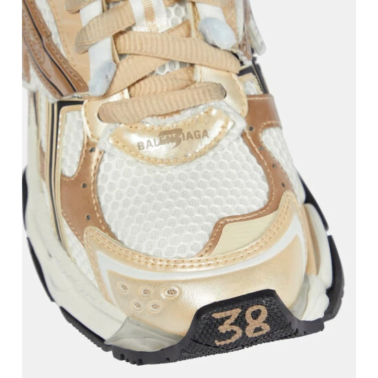 Balenciaga’s Runner sneakers are inspired by sporty footwear from the ’90s. They’re made from mesh with gold-toned nylon paneling, and set on rubber soles that have been adapted from the brand’s iconic Track design.