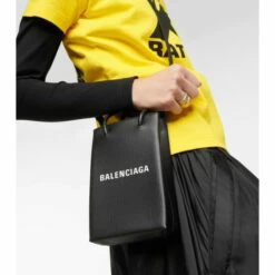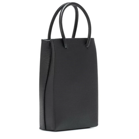 Take your Shopping Phone Pouch tote from Balenciaga everywhere this season. The everyday design is made in Italy from lightly textured black leather to look like a shopping bag with rolled topped handles and a detachable shoulder strap.