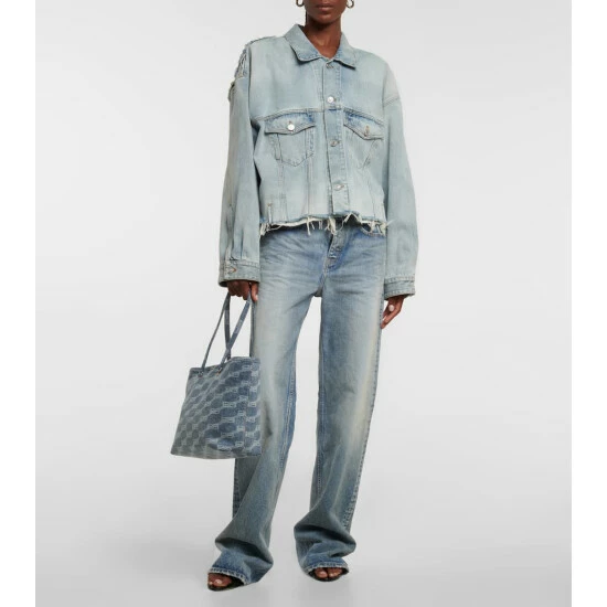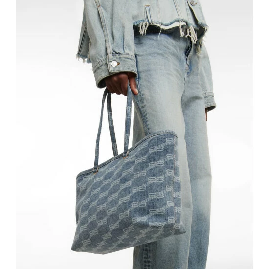 The Signature Medium East-West tote bag from Balenciaga is a contemporary take on denim. This roomy accessory is finished with an all-over monogram pattern, an inner zipped pocket, and a keyring.