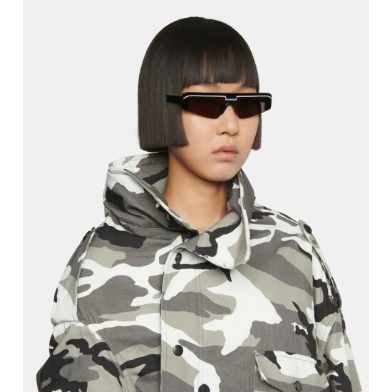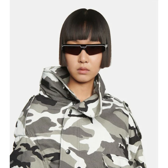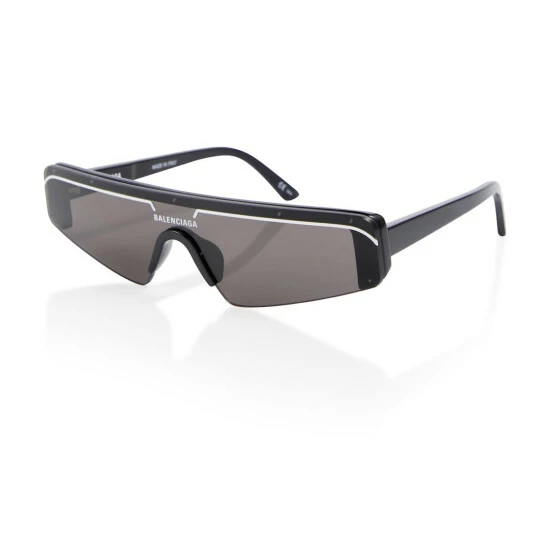 Balenciaga brings modern flair to your accessories edit with this pair of rectangular ski-inspired sunglasses. Full flat category 2 lenses are bordered by a black acetate frame for a tone-on-tone look. Contrasting white lasered enamel logo details adorn the brow and temple tip for a recognizable finishing touch.