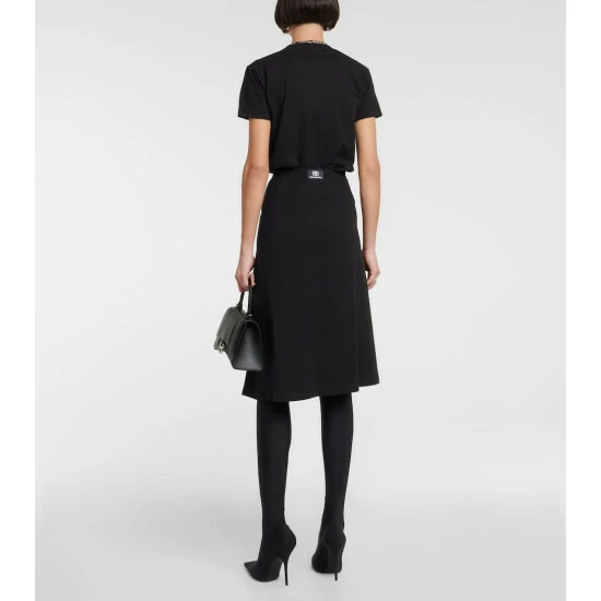 Elevate your casual staples with subtle asymmetry, courtesy of this black skirt from Balenciaga. In cotton with a touch of elastane, the stretch-fit is contemporary in design and assures all-day comfort. Complement the sporty elasticated waistband with a cropped top low-profile sneakers.