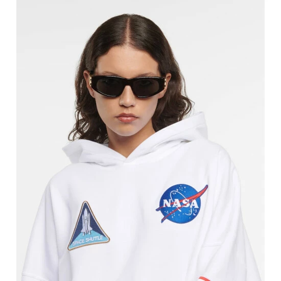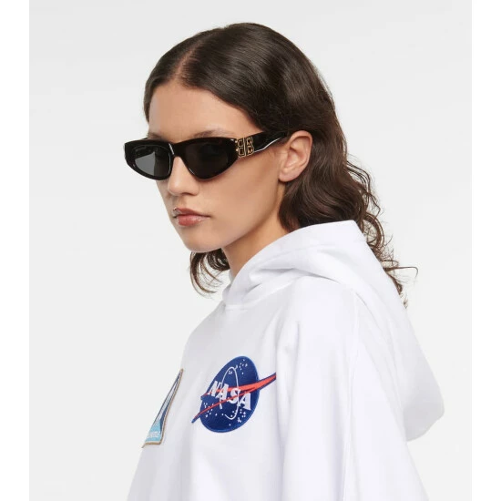 Keep your eyes well-protected from winter sun with these tortoiseshell brown acetate sunglasses from Balenciaga. They have oval frames – fitted with tinted lenses for full UV protection – and iconic golden monograms at the temples. Please note the color of the hard-shell case may vary.