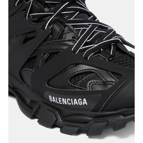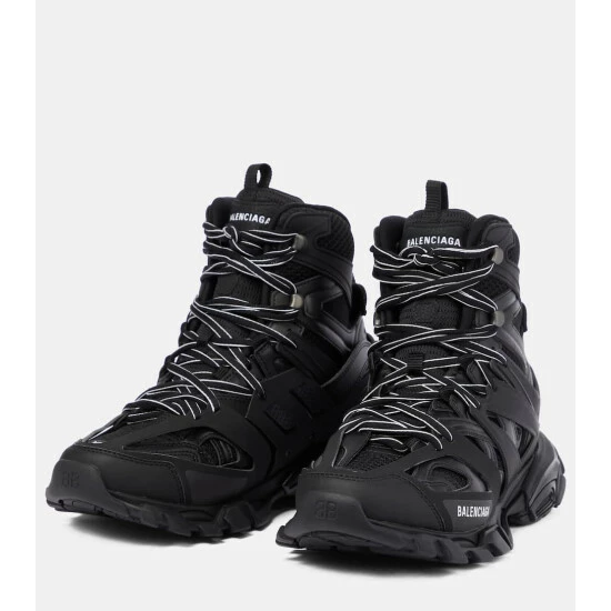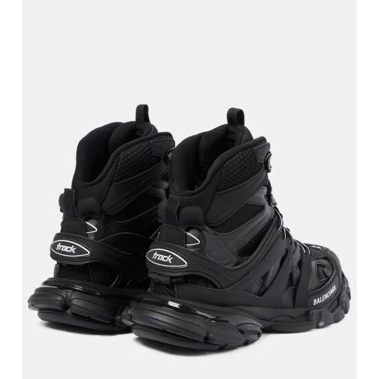 Balenciaga fully embraces the outdoor aesthetic with its Track Hike sneakers. The shoes feature high-performance craftsmanship similar to those found in hiking and running gear. Debuting in all black, the multifaceted-design is individually made with a washed, vintage effect for a pre-loved feel.