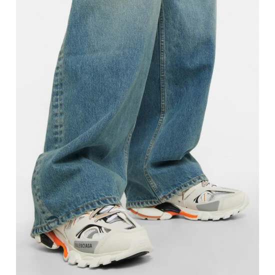 Balenciaga fully embraces the outdoor aesthetic in these Track sneakers. The shoes feature high-performance craftsmanship similar to those found in hiking and running gear. Debuting in white with bright orange accents, this pair is sure to make a statement this season.