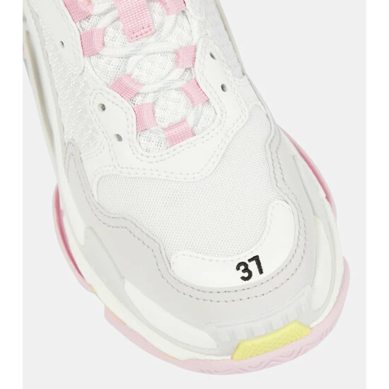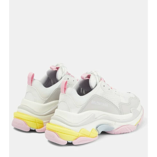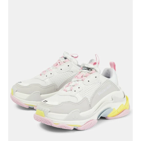 Revered by industry insiders and sneakerheads alike, Balenciaga’s chunky Triple S sneakers perfectly capture the street-style look of the moment. The name refers to their three soles, which are molded together for chunky elevation. The toes are embroidered with the size of the shoe, while the limited edition pastel color mix makes this pair a collector’s item.