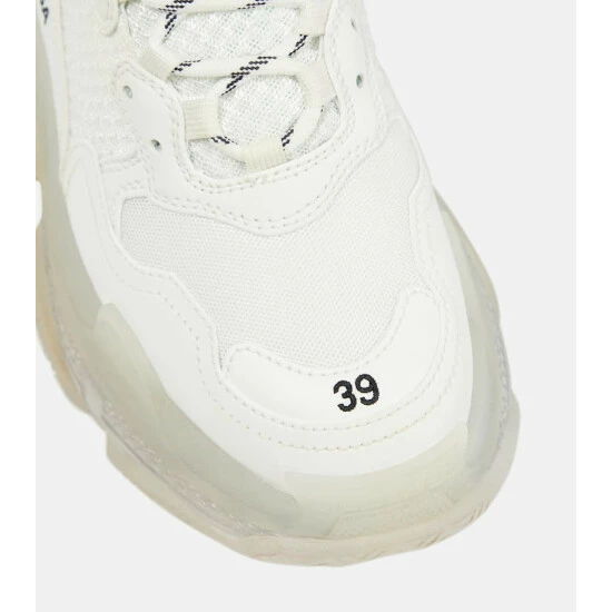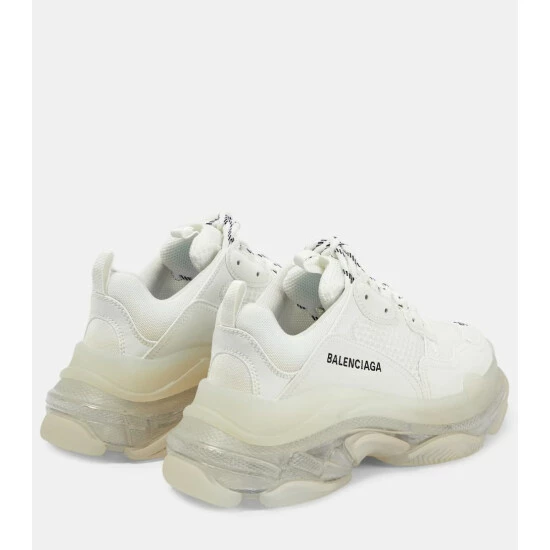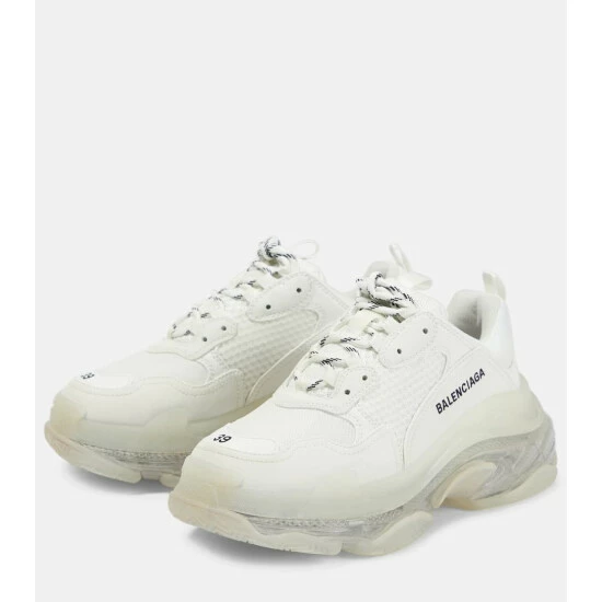 Revered by industry insiders and sneakerheads alike, Balenciaga’s chunky Triple S sneakers perfectly capture the street-style look of the moment. This iteration comes in suede, mesh, and leather paneling. The name refers to the pair’s three soles that have been molded together for chunky elevation. The toe is embroidered with the size of the shoe, while the side has the brand name embroidered for recognition. Show yours off with cropped denim.