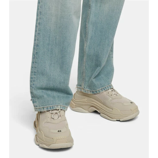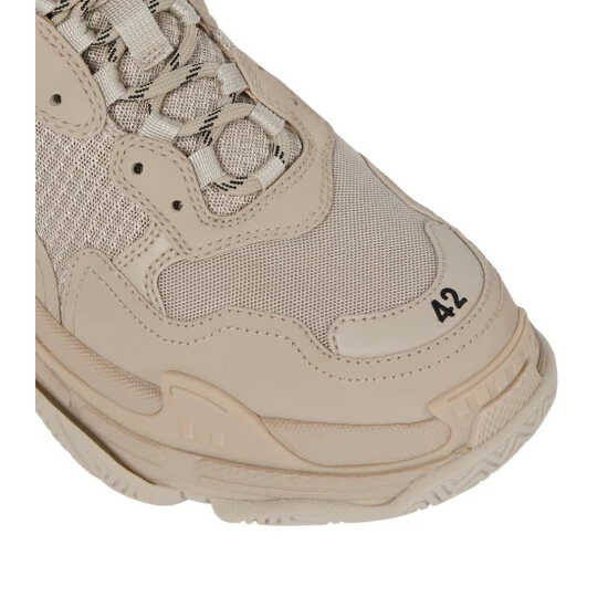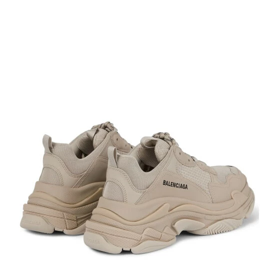 Revered by industry insiders and sneakerheads alike, Balenciaga’s chunky Triple S sneakers perfectly capture the street-style look of the moment. This iteration comes in suede, mesh, and leather paneling in all beige with black accents for contrast. The name refers to the pair’s three soles that have been molded together for chunky elevation. The toe is embroidered with the size of the shoe, while the side has the brand name embroidered for recognition. Show yours off with cropped denim.