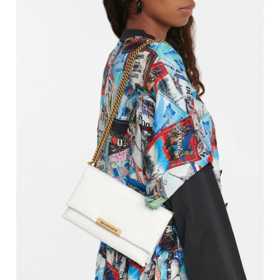 Balenciaga’s Triplet shoulder bag will be a welcome addition to any accessories collection. Made from croc-effect calfskin leather, it’s both minimalist and statement-making, and has a faceted inner for optimum organization.