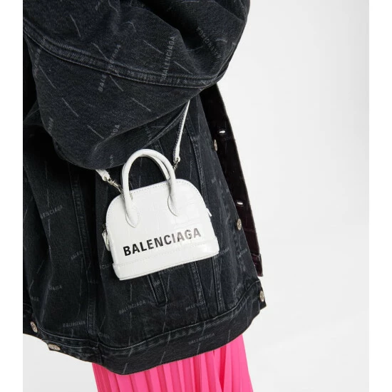 Balenciaga relishes playing with proportions, and so, the Ville Mini bag stays true to the brand’s aesthetic. A pint-sized piece made from croc-embossed white leather, it has tubular top handles and the house’s typeface logo in stark black. Wear it across your shoulder or cross-body style with an Hourglass blazer from the label.