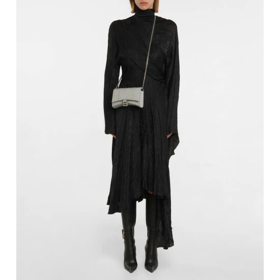 Asymmetric looks like this wrap-effect midi dress are something of a Balenciaga trademark. This design is cut from silk jacquard with a running slogan print that pays homage to Paris.