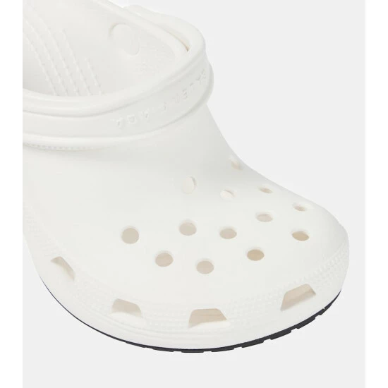 The Madame 80 pumps are the brainchild of Balenciaga’s much-awaited second collaboration with Crocs. Launched as part of the label’s Clones Collection, this hybrid all-white design sees the classic round-toed, rubber clog set atop 80mm heels, with debossed branding on the adjustable straps.